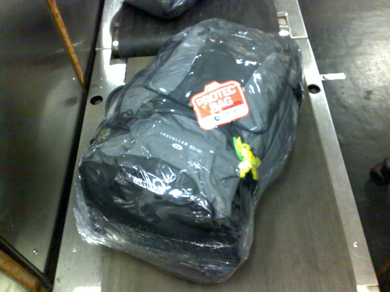 * Sempre coloco um saco plástico bem grosso no fundo e também por cima da mala, para evitar que molhe caso pegue chuva. Nos aeroportos, existe a possibilidade de vc pagar para embalar toda sua mala. Eu não curto, pq caso sua mala seja revistada, essa embalagem que vc pagou vai por água abaixo e o que vc gastou, foi dinheiro jogado fora.