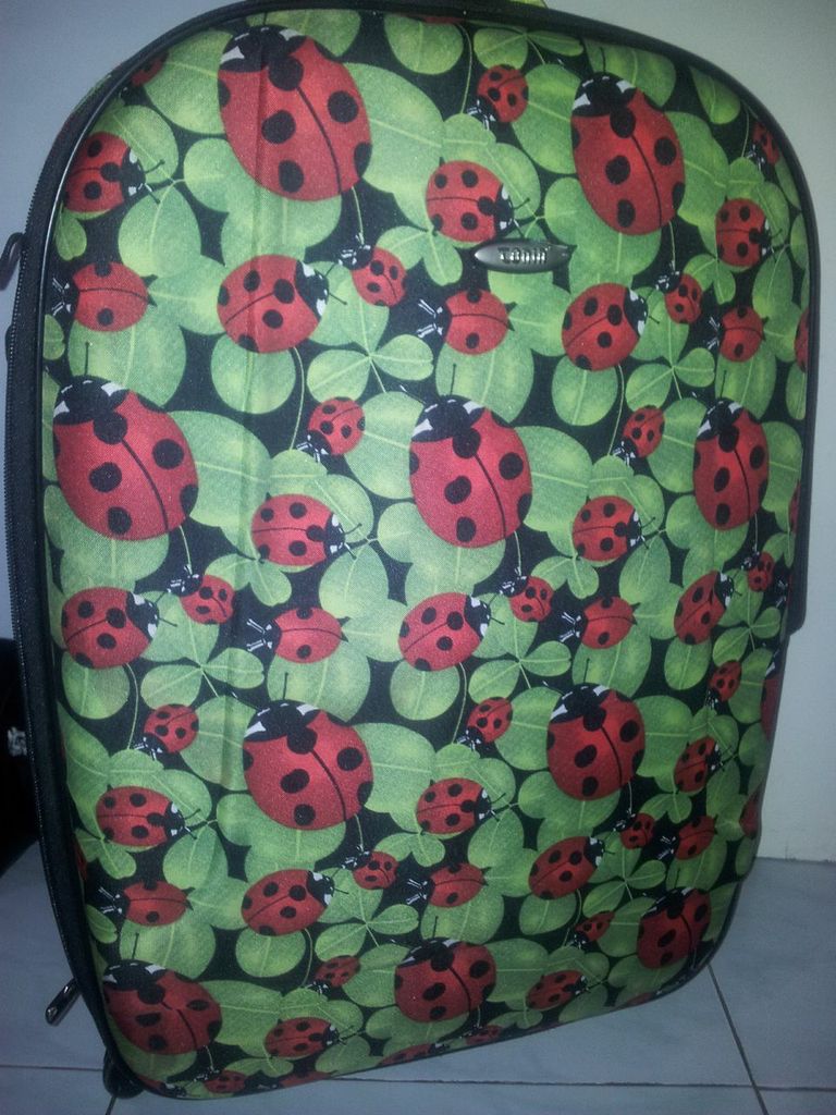 *Para identificar fácil sua mala, recomendo colocar várias fitas o mais colorido possível. Mesmo assim, mala cor de vinho e preta são as mais vistas ultimamente. Por esse motivo, adquiri recentemente essa mala com estampa de joaninhas. Primeiro pq me apaixonei por ela e segundo, pq dificilmente vc encontra outra igual. Não é impossível, mas com certeza bem mais raro.